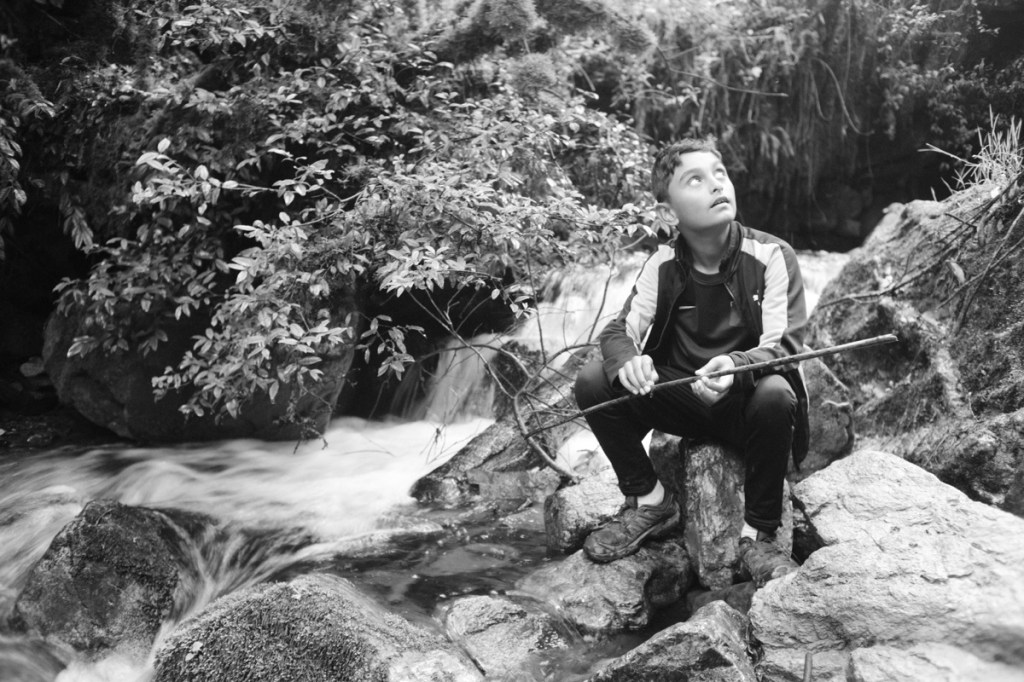 Leo playing Tarzan with a vine