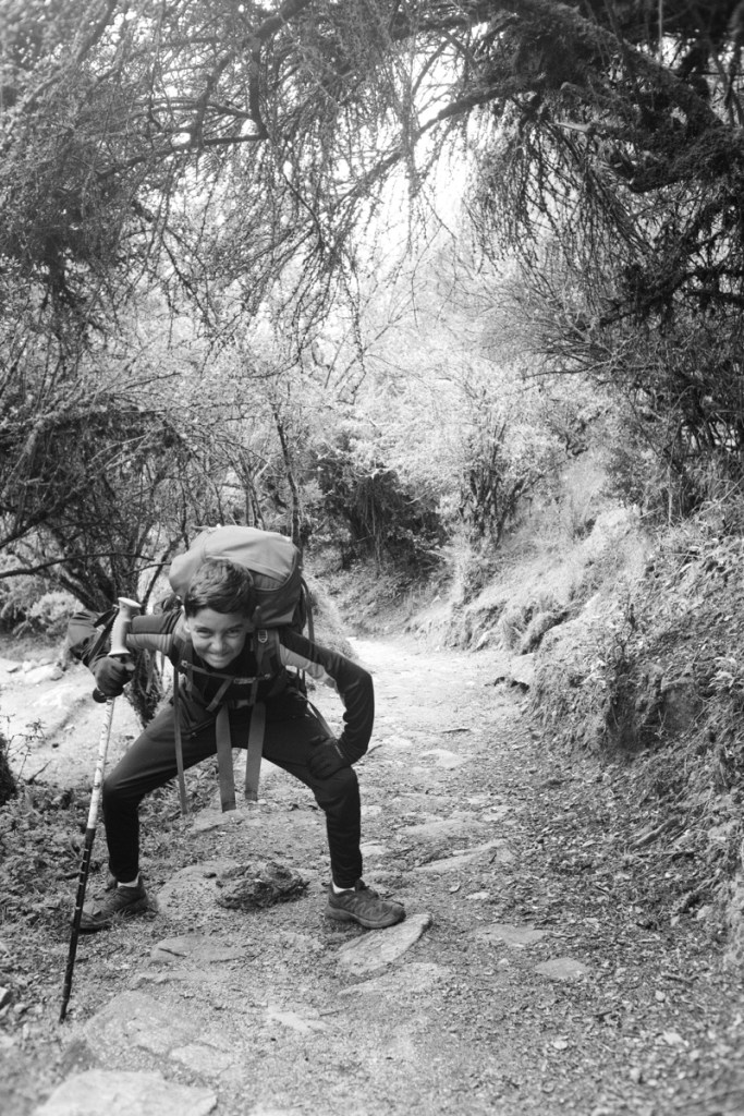 Besides the guide, we were accompanied by an « army » of 5 porters/cooks. Their job is fairly straightforward : everyday, wake up a half hour before us, prepare breakfast, leave after us to pack our tents and all the equipment, then pass us on the trail with 30kg of equipment on their back, prepare lunch before we reach the lunch site, leave after us to pack everything again, pass us on the trail again to setup our tents and prepare diner, and of course sleep after us. All this with a big smile on their face, while we are exhausted from our daily walk and complaining about our back and legs pain!