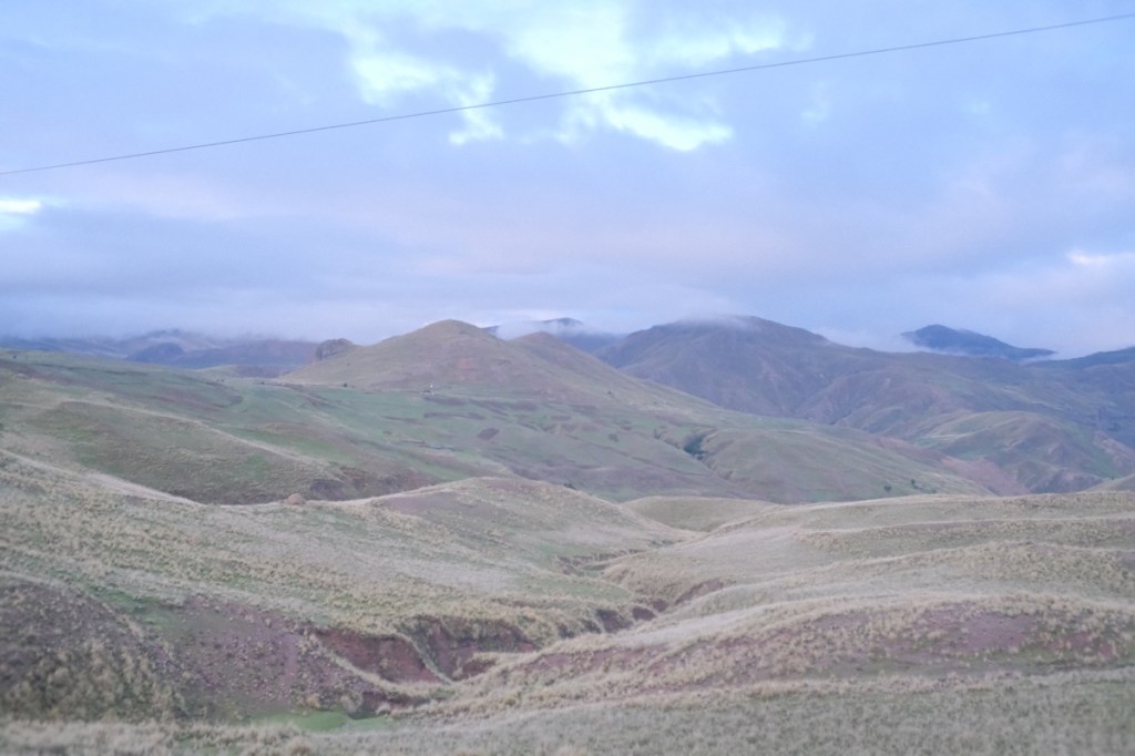 We start an hour later, and slowly the sun rises on the mountains. We reach Quehue, Checca, El Descanso, Espinar. We’re on a plateau so the road is a bit more smooth.