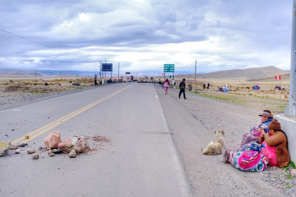In spite of the detour, we’re stopped at noon by a road block at the entrance of Ayaviri, some 2 hours away from Juliaca. They say the protesters should leave and open the barricade around 6pm.