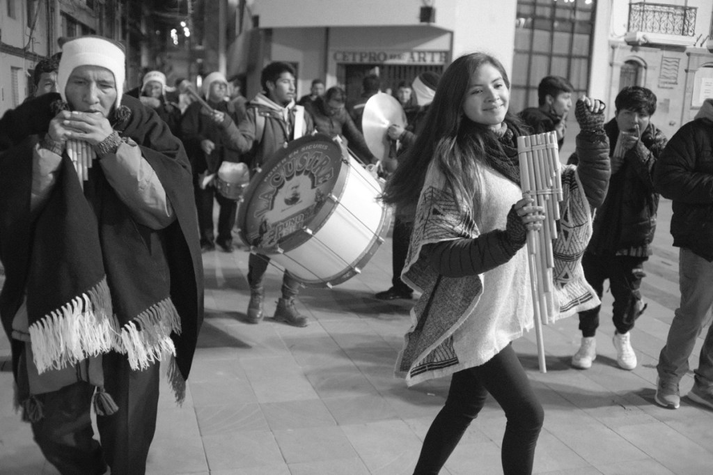 It’s February 1st, and the beginning of Puno’s grand festival of the Candelaria. Normally the festival is extremely colourful and gathers musicians from all over the country. This year, it’s very low key and rather sad because of the political context, but we still see some local marching bands playing drums and flutes in the streets.