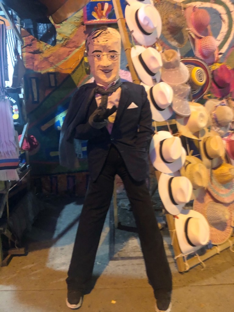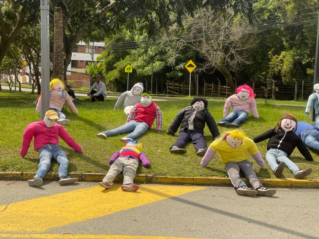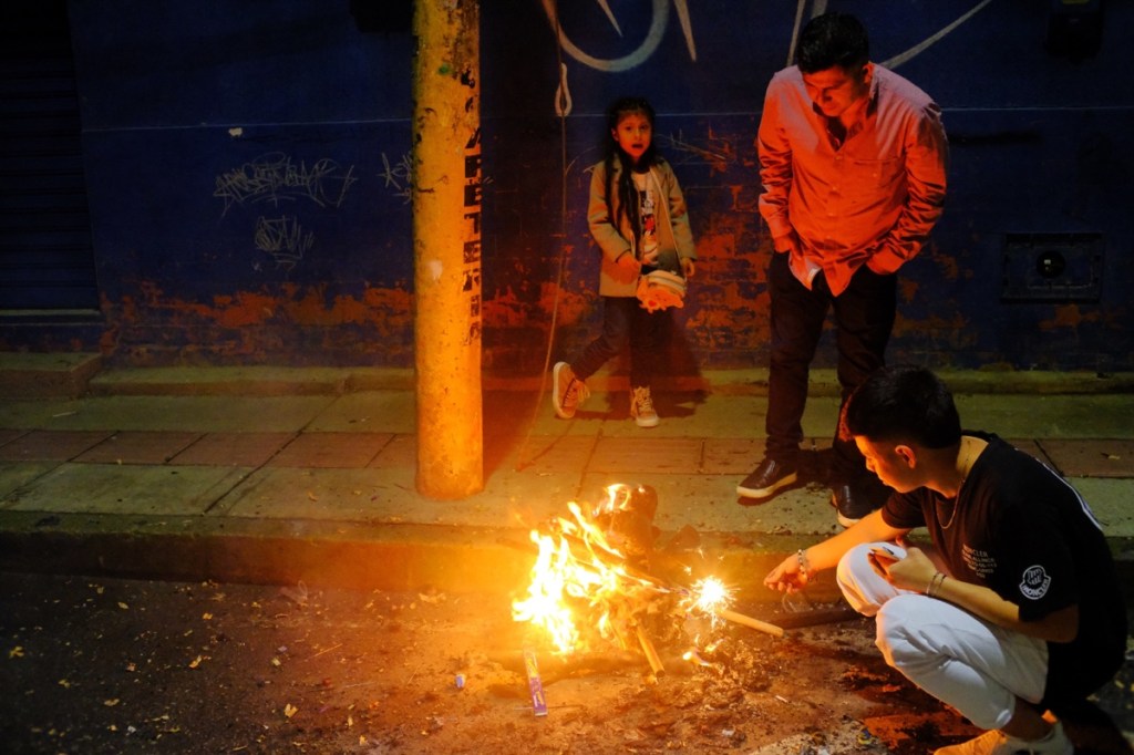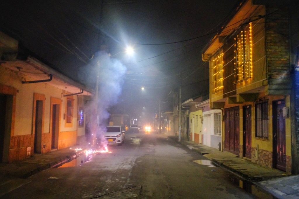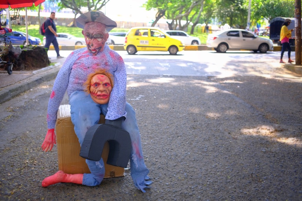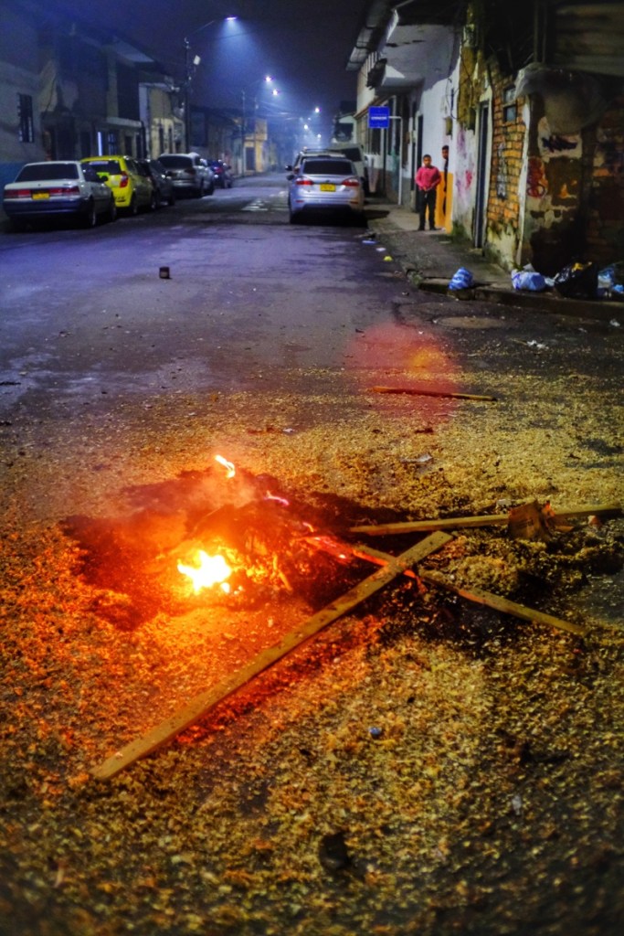 The most notable part was the burning of the Taitapuros! All over Colombia (and other parts of latin America) life size human figures made of straw and fully dressed, often packed with firecrackers, are exposed along the side of the road, waiting to be set on fire on the 31st at midnight.