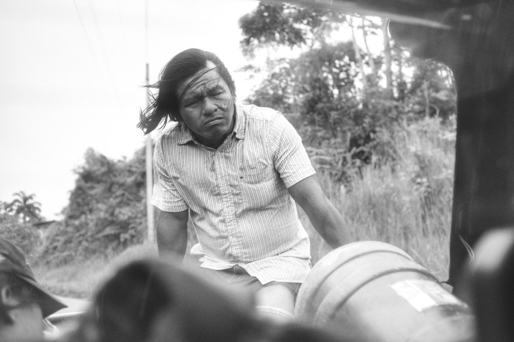 At 5:30am, itโs time to load our bags in the pickup truck and go. We cross the Napo river and head towards the Yasuni national park. For a couple of hours we follow an oil pipeline alimented by a series of extraction sites. The Ecuador jungle has been invaded -and heavily polluted- by American oil companies. (Chevron owes 80B$ to Ecuador for a case of pollution but they wonโt pay a dime!)