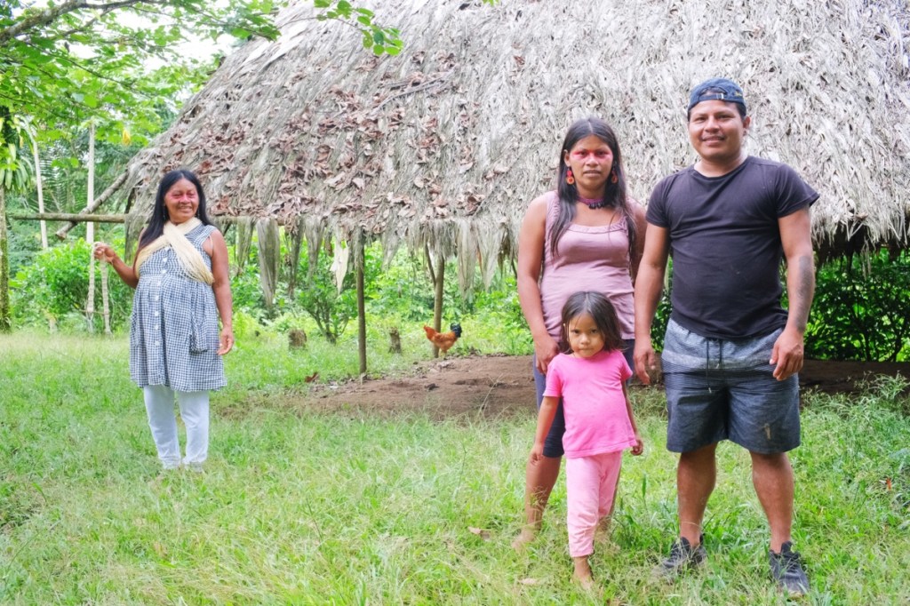 Wareka and his cousins are from the Waorani tribe who live deep in the amazon forest and have been ยซ contact people ยป for some 60 years now. Tomorrow they will take us to their family and show us their customs. But first we need gum boots! They take us to a store to buy rain ponchos and a pair of gum boots for Leo; with this weโre ready for the adventure.