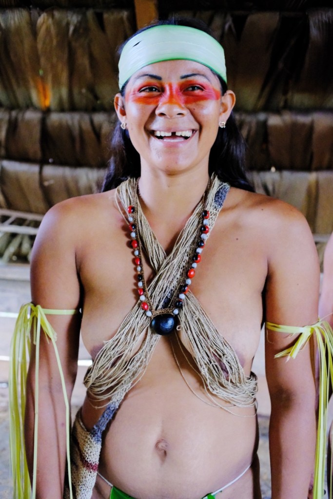 It was the fourth day, the women demonstrated ceremonial dances and chants and presented handicrafts. This type of representation for tourists usually makes me uneasy, but this was different ; they were people we knew by now, one of them had cooked the monkey, another had just extracted the splinters out of my hands an hour before. They were very at ease with their traditional nudity, and cheerful.