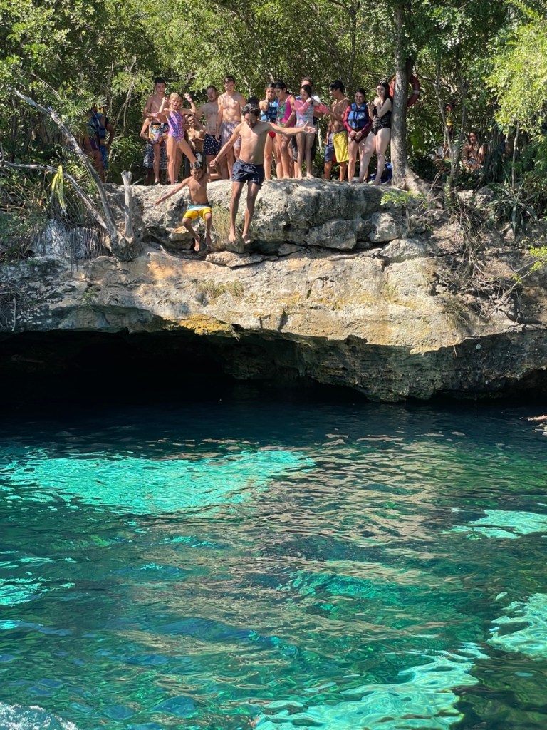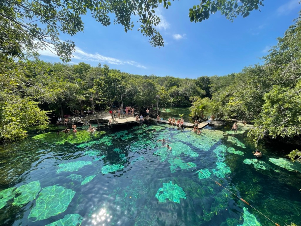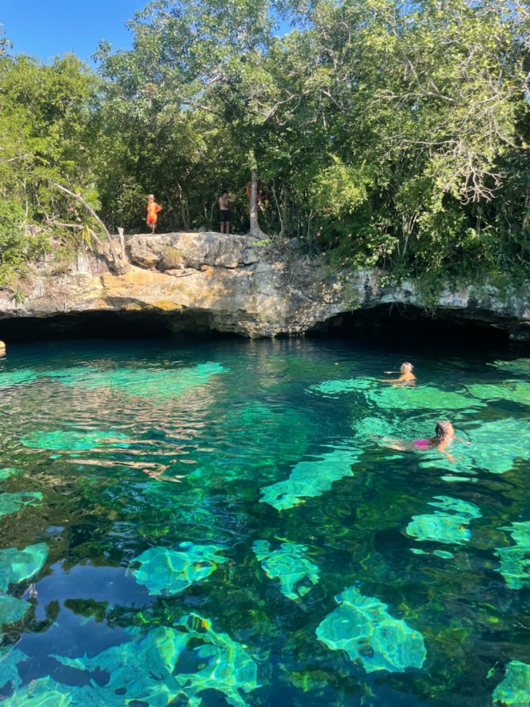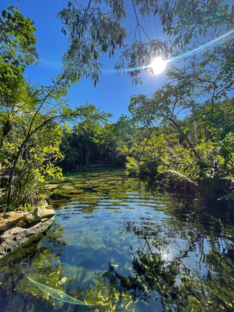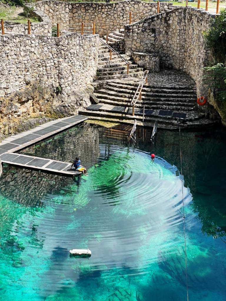 Crystal clear water in a preserved environment that used to be sacred places where the Mayans would come to perform sacrifices.