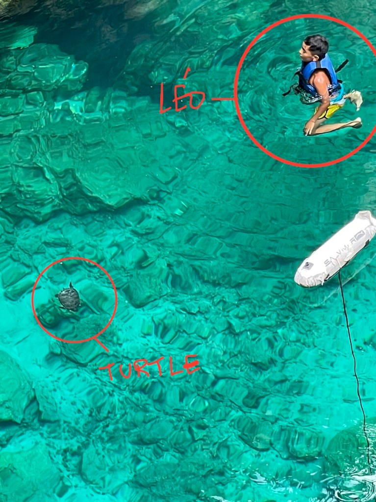 We could see turtles swimming next to us and bats coming out of the cave and flying over our heads.
