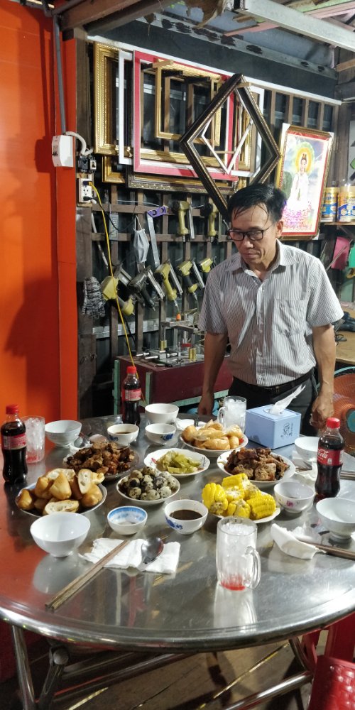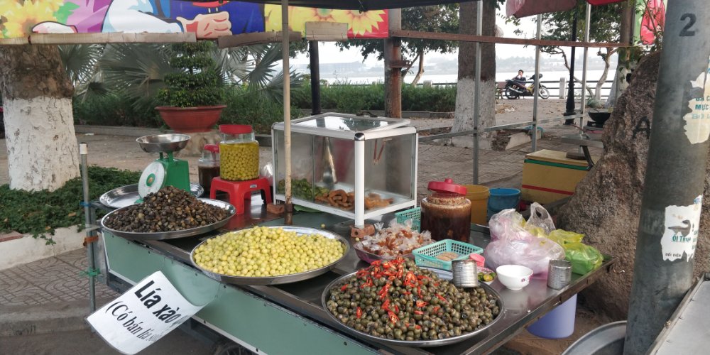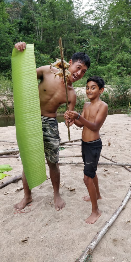 On our way up the mountain it was super hot and we were wondering if it was a good idea after all. The tour owner had told us that his grandfather had shown him this path as this is where he hid during the war. We were so fascinated by the story that we decided to come. Once we were at the base of the mountain, we were sheltered by the trees and it felt much better. There was barely a pathway but our guide Than had a sickle to pave the way for us. I doubt if we’d have been able to get here on our own. The way down was even more tough. Leo started getting cranky and each of us took turns to cheer him up. Somehow we managed to make it through the jungle, past the leeches and into the boat. With great relief, we picnicked near the riverside and feasted on the fish freshly caught by the boatman.