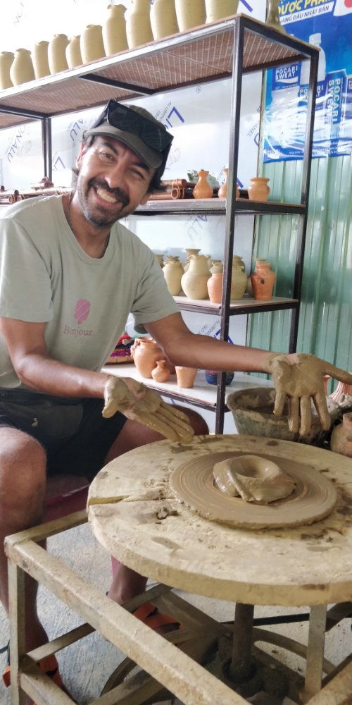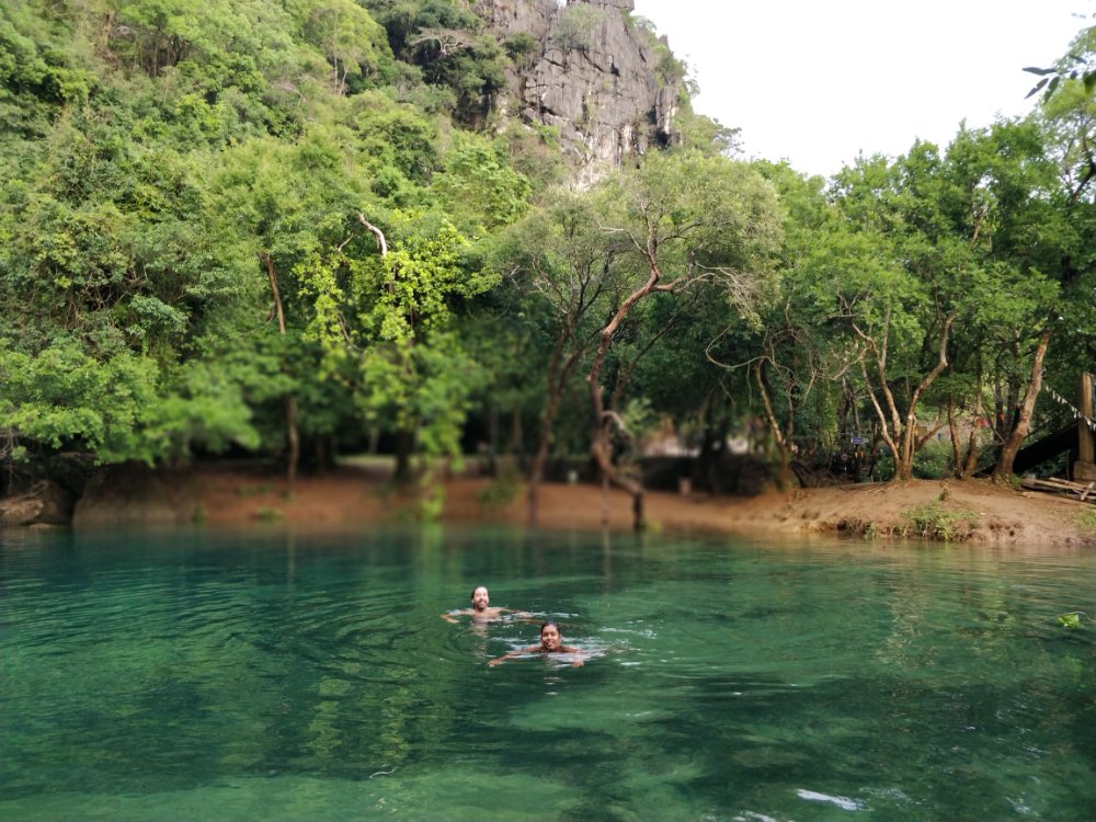 From Luang Prabang we went to Vientiane – the capital. We wanted to go by land to Cambodia and most buses to the south of Laos left from Vientiane. We did not see much here and headed straight to Thakhek to do a motorcycle loop. It was super hot on the first day. Leo and I came very close to having heat strokes. The almost dried up waterfall gave us some respite. It was here that we met a young German group. We started chatting and found ourselves do the rest of the loop together, staying at the same guest house, sticking through tire punctures and food poisoning. One of the gems along the Thakhek loop was a pristine pond called cool waters which as the name suggests has coooool waters which were a clear blue. We managed to go there twice. Leo had an interview with a private school in Paris. This was a backup plan incase he didn’t get admitted to the public school of our choice. We were supposed to go to a beautiful restaurant with WiFi except that the motorcycle needed fuel and we didn’t have enough cash. The next hour was spent looking for an ATM that worked. It was too late to go to the selected spot so we rushed into a school by the roadside. We found an empty classroom and quickly did a zoom call. The kids in the school saw us and thought it’d be fun to burst crackers near the window. Inspite of the chaos, the interview went well and Leo was admitted to the school! Yay! no