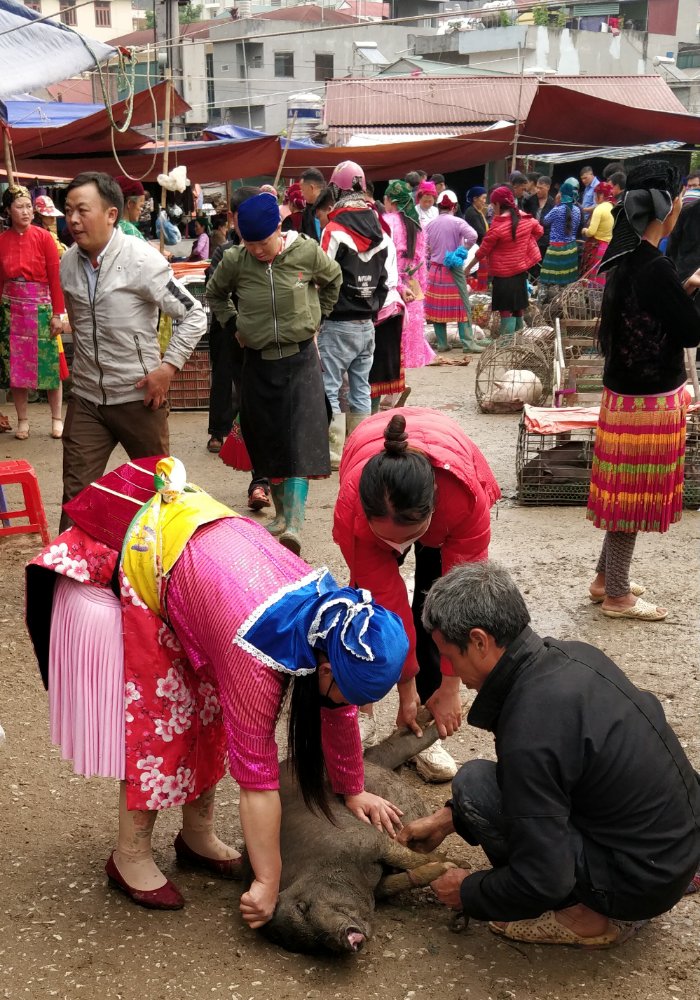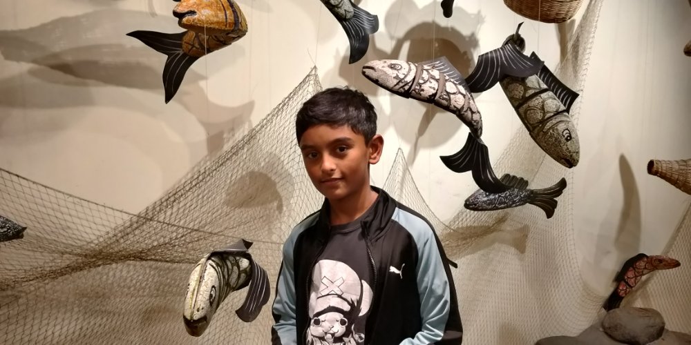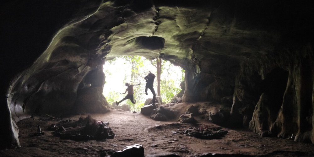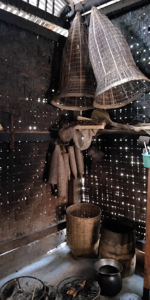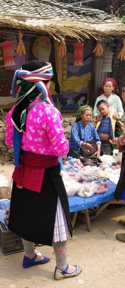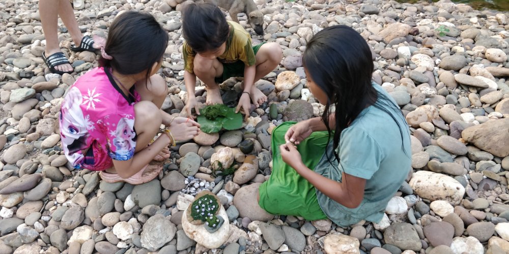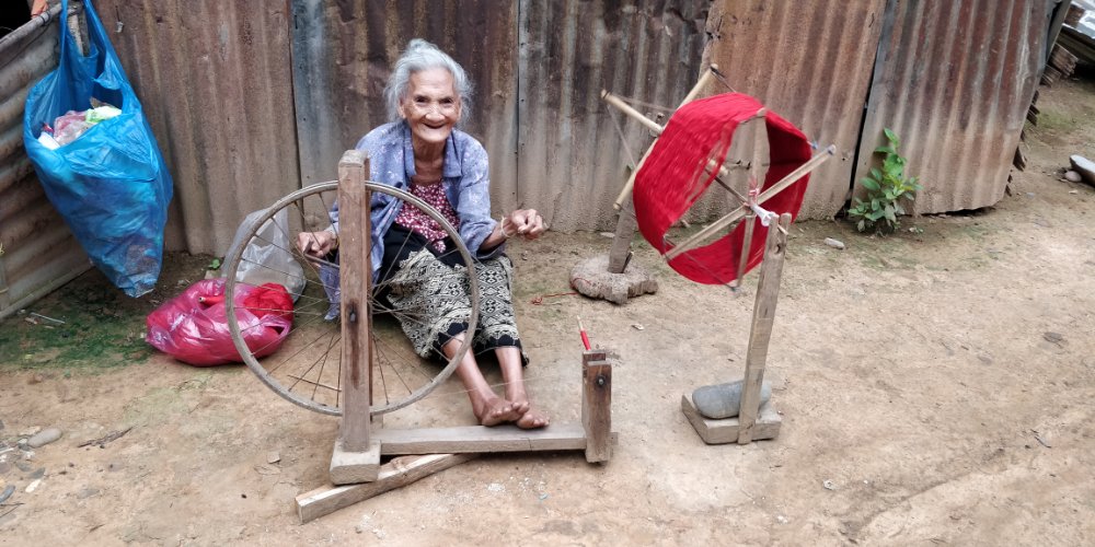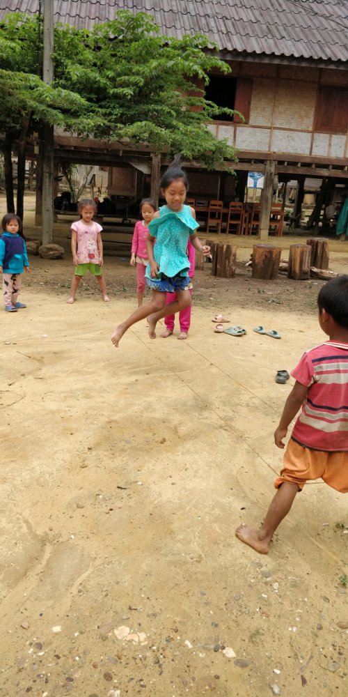 Arjun and I went straight to the river for a swim after trekking the whole day in the sun. It was refreshing! I managed to swim here without any fear and realized that I’ve conquered my fear of deep waters. The evening was spent walking around the village, chatting with the villagers. The dinner was served in one of the houses. We were surprised to see skewers of tiny barbecued frogs. Leo was very keen on tasting the frogs and they did taste good. We then learnt to weave a basket and all of us made one big enough to hold our water bottle. The next morning we had our breakfast of porridge with tender coconut. We were supposed to trek to a waterfall. After crossing into and over several privately owned fields, we managed to reach the spot which had turquoise blue waters. We felt refreshed! We then went to have a picnic with meals wrapped in a banana leaf. Our group split here and Arjun, Leo & I continued our trek. We were to visit a remote village which had a weaver community. The others were to go there own way. As we said goodbye, we took a boat to one of the villages and did a small trek to have a look at a cave. Laos and Vietnam has many huge caves hidden in the mountains. This used to house all the army personnel during the war. We then went to the village where we were to sleep and start our hike the next morning. The village was beautiful beyond words. We went for a swim and Leo started chatting with some french tourists who were fishing. They gave him one of their fishing rods to try his luck. The French group was here to build a school for the children. They had collected money from crowdfunding and used this here to repair the school building and buy provisions. I could see the look of satisfaction in their eyes. The next morning we met a few weavers, mostly women who were spinning the wheel or creating beautiful patterns. Here I picked up a beautiful piece of work done by one of the weaver’s grandmother. This was the heirloom left to her granddaughter in case she was ever in need. The weaving pattern is apparently not done anymore.