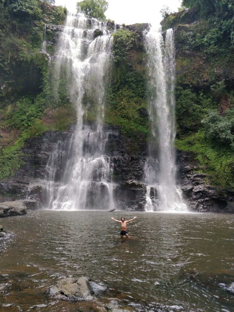 Our final destination was Don Det. It takes hours and hours of bus rides from one place to the other in Laos. We were in a tiny guesthouse by the river with our German friends. All we did was chill, swim in the river, cycle around the village, and go to waterfalls. We managed to swim in the southernmost part of the river. We could see Cambodia from here! Leo and Arjun managed to perfect their backflips here with one of the German travellers explaining what to do.