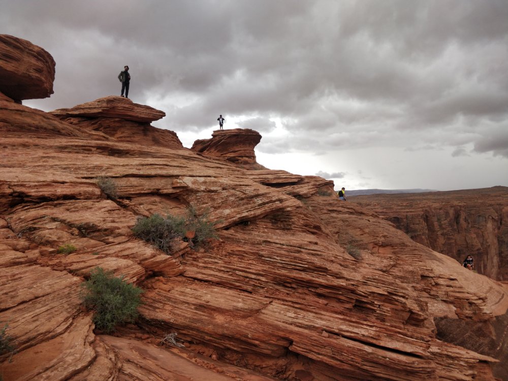 After a detour at the horseshoe bend we arrived at the site of the grand canyon on a rainy day. Luckily, it stopped raining the next day and we went out on a trail under cloudy skies. Everything is so huge that we looked like tiny specks floating around. I can understand why the Americans think BIG!